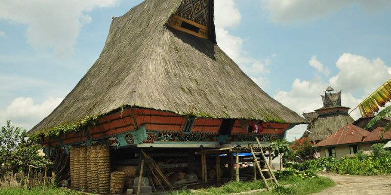 Rumah adat Batak Karo memiliki ciri khas atap bertingkat dan berukuran besar karena dihuni oleh beberapa keluarga dalam satu bangunan.