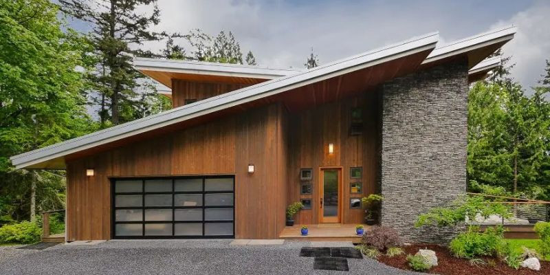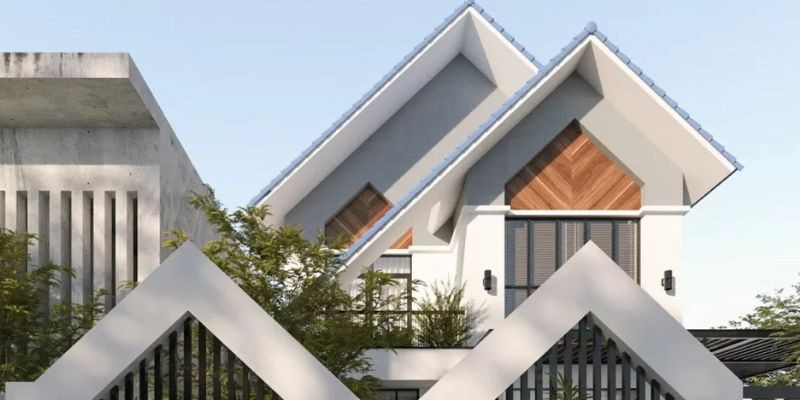 Kesan dinamisnya semakin terasa bila dipadukan dengan jendela kaca besar atau fasad geometris. Desain ini sering digunakan pada rumah-rumah modern di kawasan urban yang ingin tampil beda.