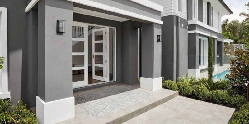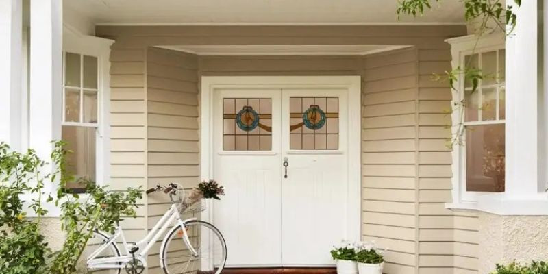 Agar perpaduan warna teras rumah terlihat menyatu, warna teras perlu disesuaikan dengan pintu dan kusen. Jika pintu menggunakan warna kayu alami, pilihan warna teras netral seperti beige atau abu-abu hangat akan memperkuat kesan alami sekaligus menjaga proporsi warna. Untuk pintu berwarna gelap, teras dengan warna lebih terang dapat memberikan kontras lembut berfungsi sebagai aksen visual tanpa membuat fasad terlihat berat.