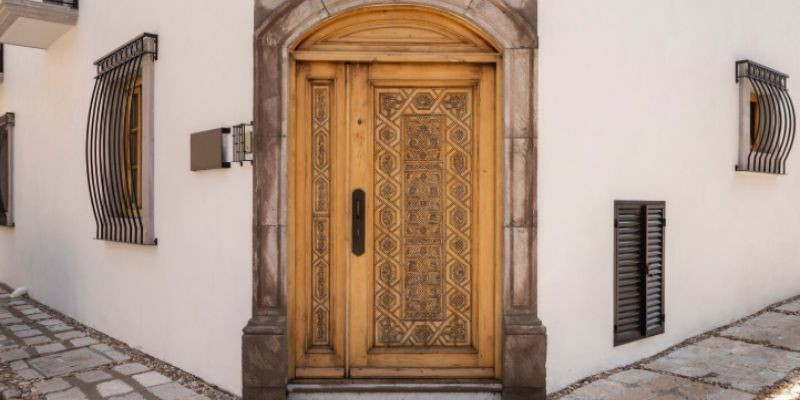 Jika area depan kamarmu terbatas, bukan berarti tampilannya tidak bisa terlihat mewah. Pintu single door dengan ukiran di permukaannya bisa menjadi solusi elegan.