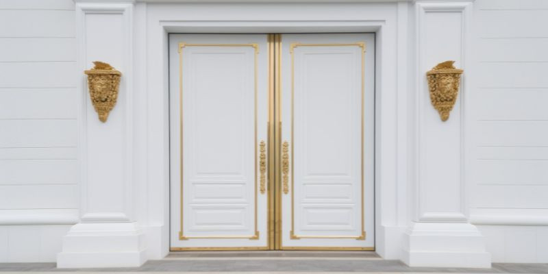 3. Double Door Mewah dengan Aksen Keemasan