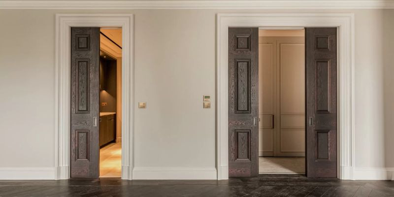 Butuh pintu kamar tidur mewah hemat tempat serta tetap bergaya? Pocket door bisa jadi jawabannya. Pintu saku ini digeser ke samping lalu “menghilang” ke dalam dinding, menciptakan tampilan rapi dan modern.