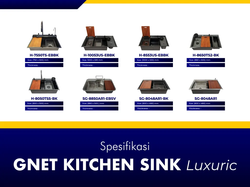 GNET Kitchen Sink Luxuric adalah pilihan sempurna bagi Anda yang menginginkan kenyamanan dan kemewahan di area dapur. Terbuat dari bahan Premium SUS-304 Stainless Steel, bak cuci piring ini tidak hanya tahan karat, tetapi juga kuat dan awet untuk penggunaan jangka panjang.